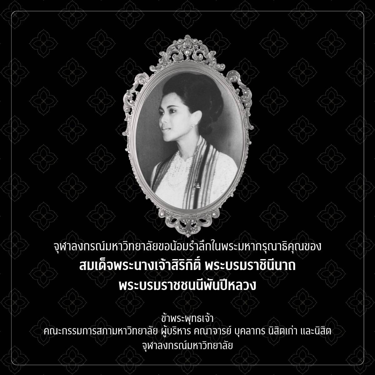 จุฬาลงกรณ์มหาวิทยาลัยขอน้อมรำลึกในพระมหากรุณาธิคุณของสมเด็จพระนางเจ้าสิริกิติ์ พระบรมราชินีนาถ พระบรมราชชนนีพันปีหลวง