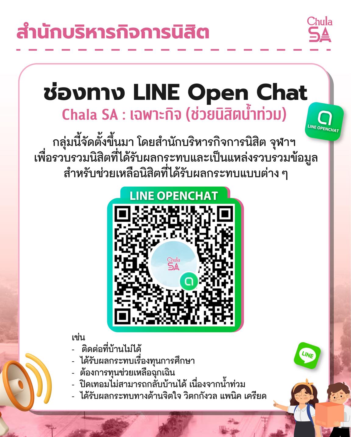 ช่องทาง LINE Open Chat Chula SA : เฉพาะกิจ (ช่วยนิสิตน้ำท่วม)
