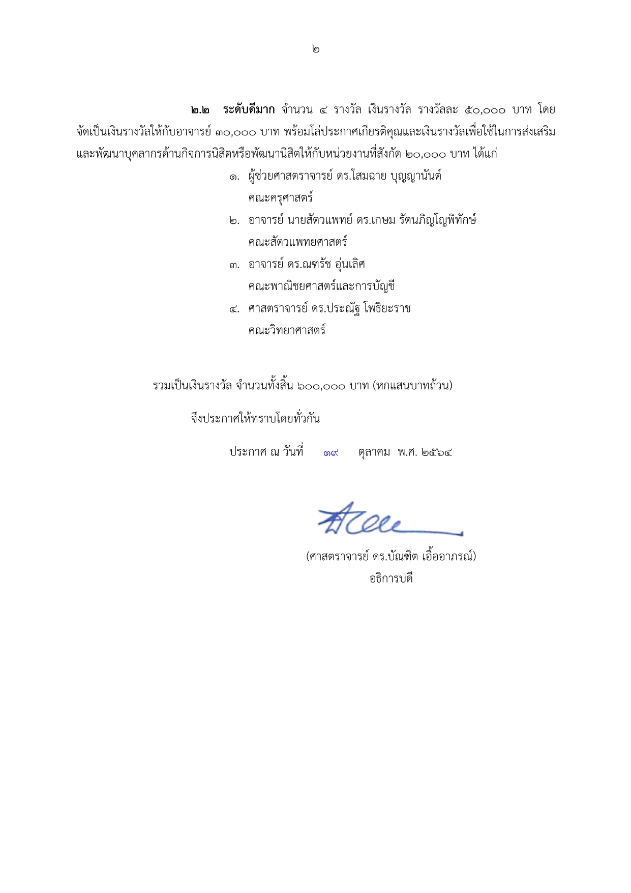 ประกาศ จุฬาลงกรณ์มหาวิทยาลัย เรื่อง รางวัลยกย่องเชิดชูเกียรติอาจารย์ด้านกิจการนิสิต ประจำปี พ.ศ. ๒๕๖๔