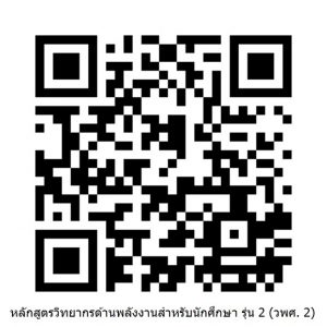 ทางสถาบันวิทยาการพลังงาน จัดอบรมหลักสูตรด้านวิทยาการพลังงานให้กับนักศึกษา รุ่นที่ 2 ที่สวนนงนุช พัทยา ระหว่างวันที่ 4-9 มิย. 60 ขอเชิญนิสิตสมัครเข้าร่วมฟรี ตามรายละเอียดและ QR code นี้