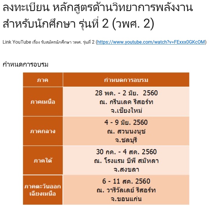 ฟรี เข้าร่วมอบรมหลักสูตรด้านวิทยาการพลังงานให้กับนักศึกษา รุ่นที่ 2 ระหว่างวันที่ 4-9 มิย. 60