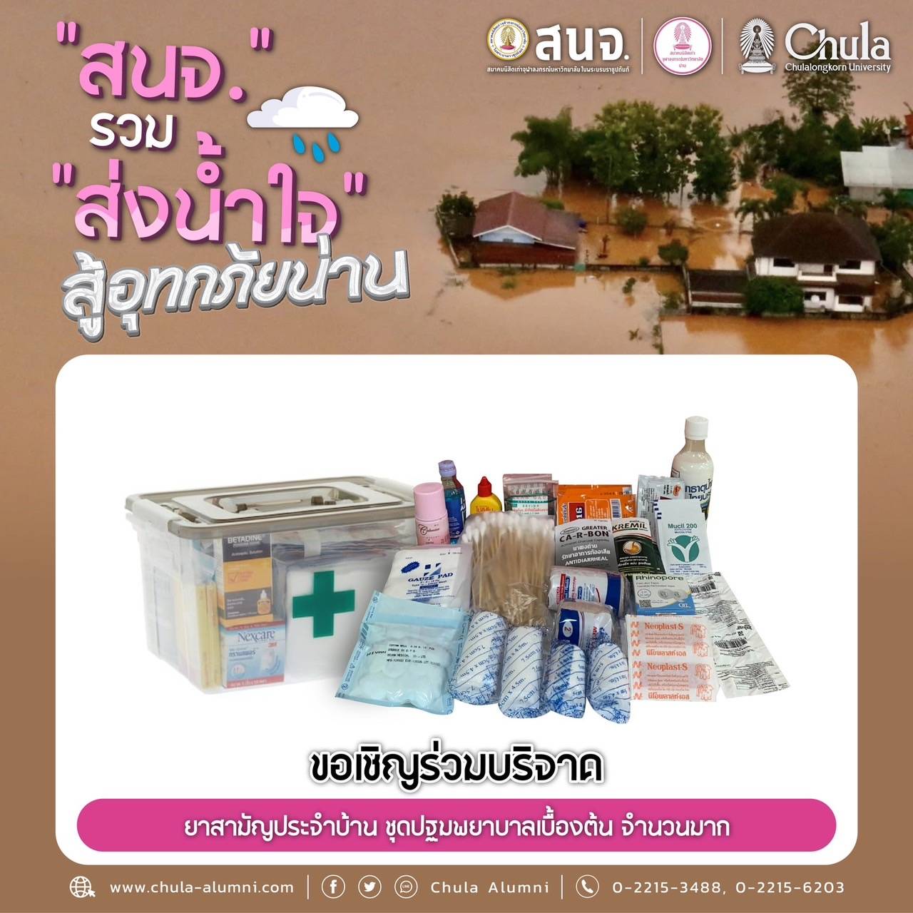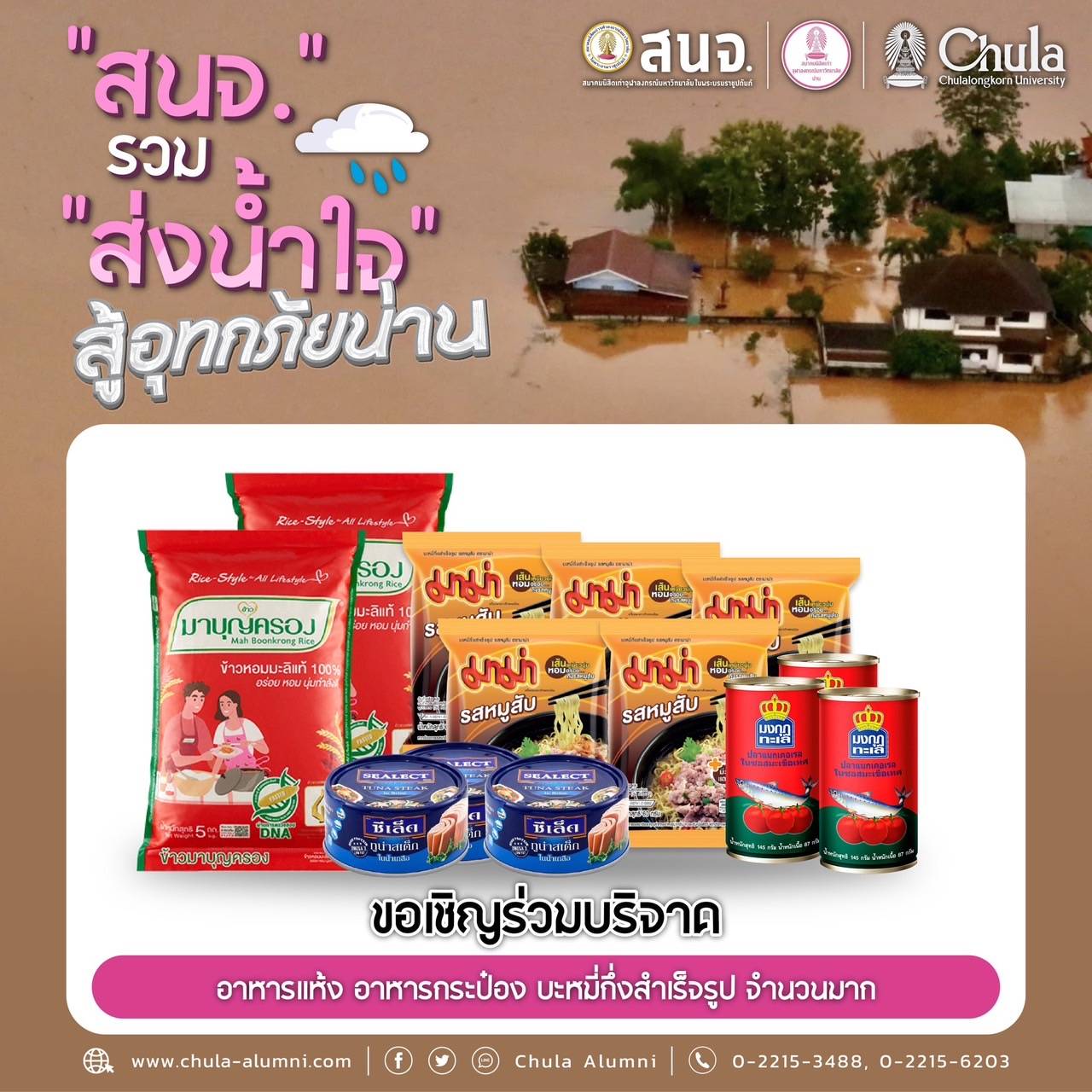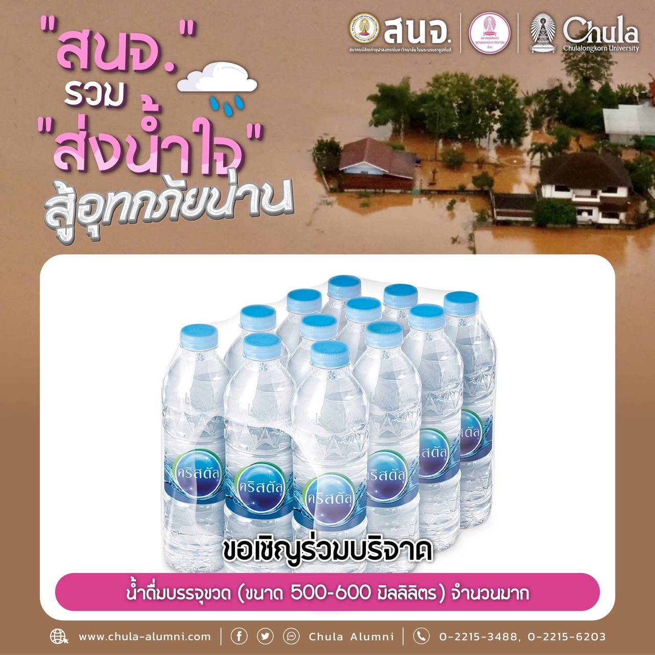 นำส่งเครื่องอุปโภคบริโภคได้ที่ สมาคมนิสิตเก่าจุฬาลงกรณ์มหาวิทยาลัย ในพระบรมราชูปถัมภ์ (สนจ.) ถนนพญาไท กรุงเทพฯ ได้ทุกวัน เวลา 9.00-16.00 น. ตั้งแต่วันนี้ถึง 31 ก.ค.68