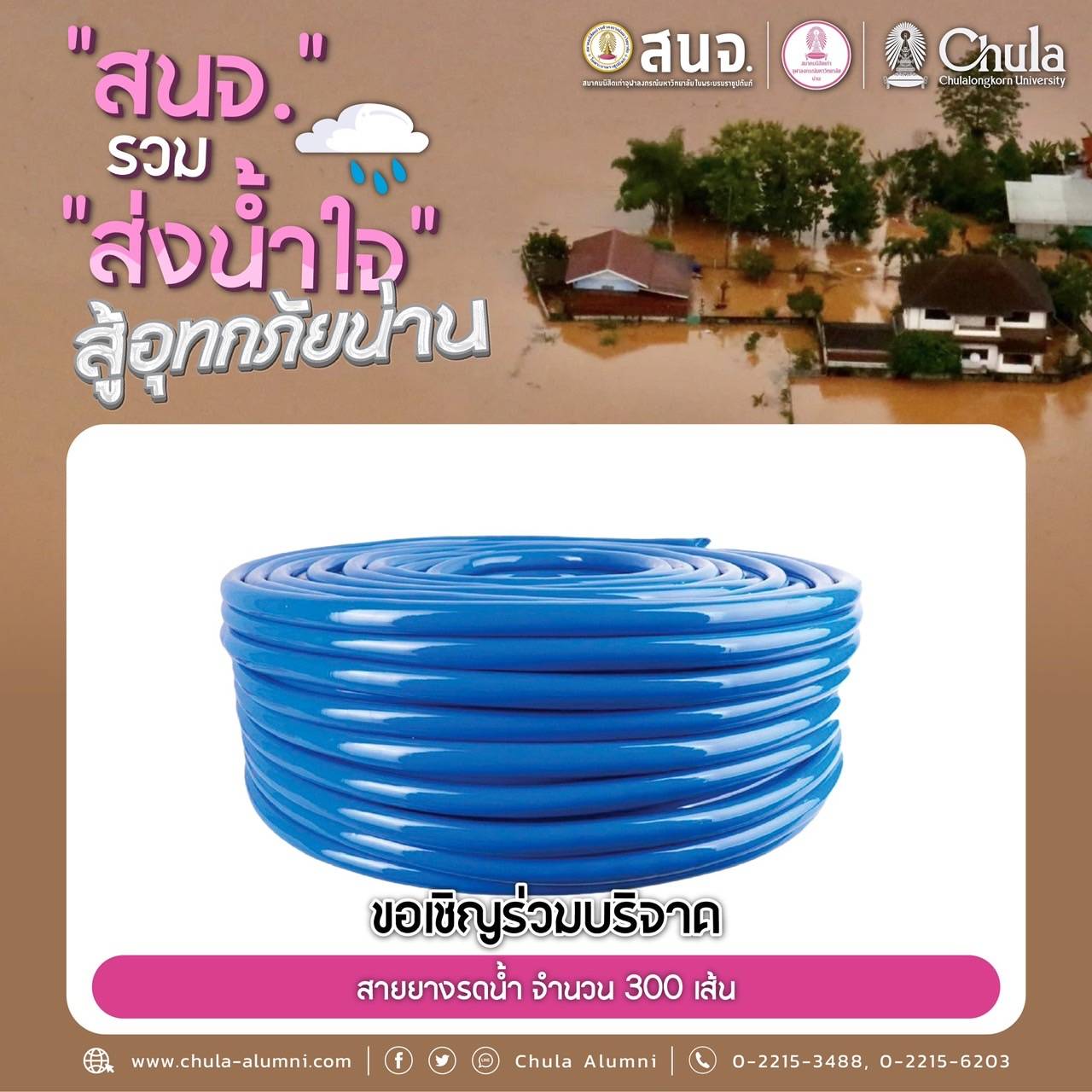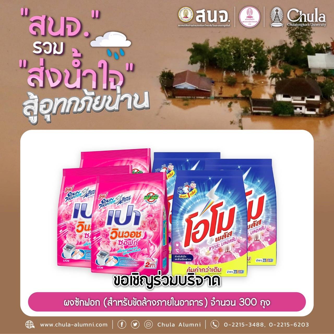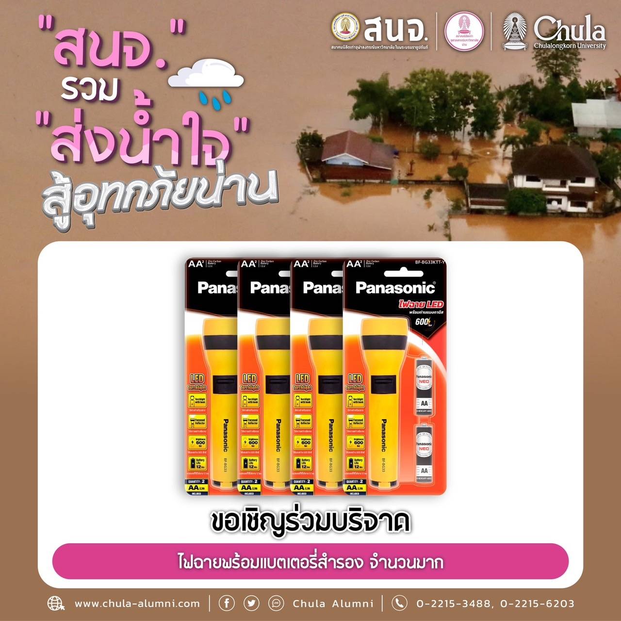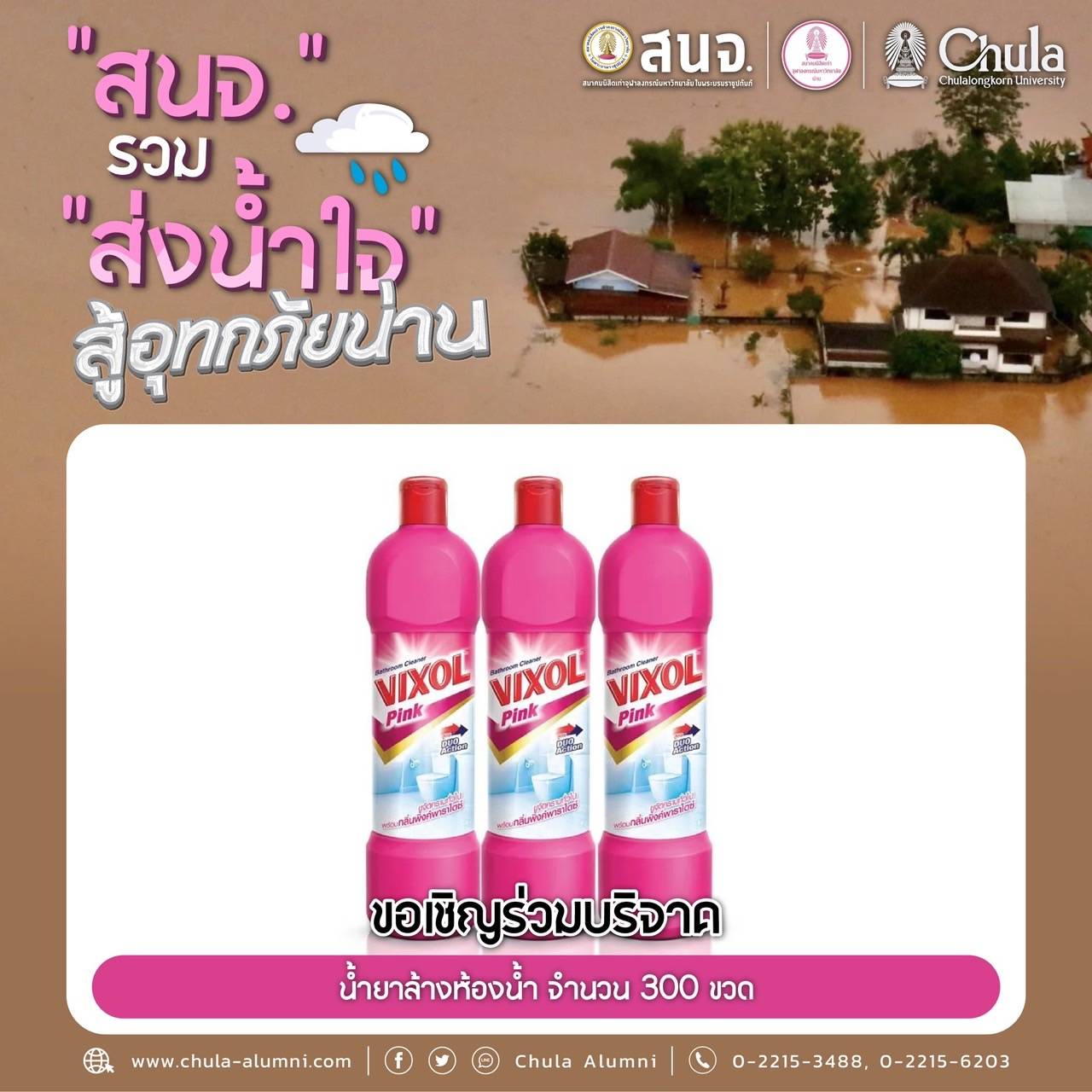 นำส่งเครื่องอุปโภคบริโภคได้ที่ สมาคมนิสิตเก่าจุฬาลงกรณ์มหาวิทยาลัย ในพระบรมราชูปถัมภ์ (สนจ.) ถนนพญาไท กรุงเทพฯ ได้ทุกวัน เวลา 9.00-16.00 น. ตั้งแต่วันนี้ถึง 31 ก.ค.68