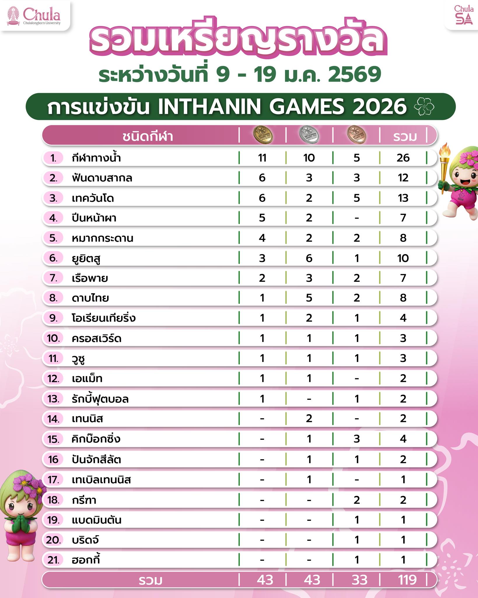 ขอบคุณทุกความทุ่มเทของนักกีฬาทุกคน! แฟนๆ ชาวจุฬาฯ อย่าลืมส่งใจเชียร์กันต่อ