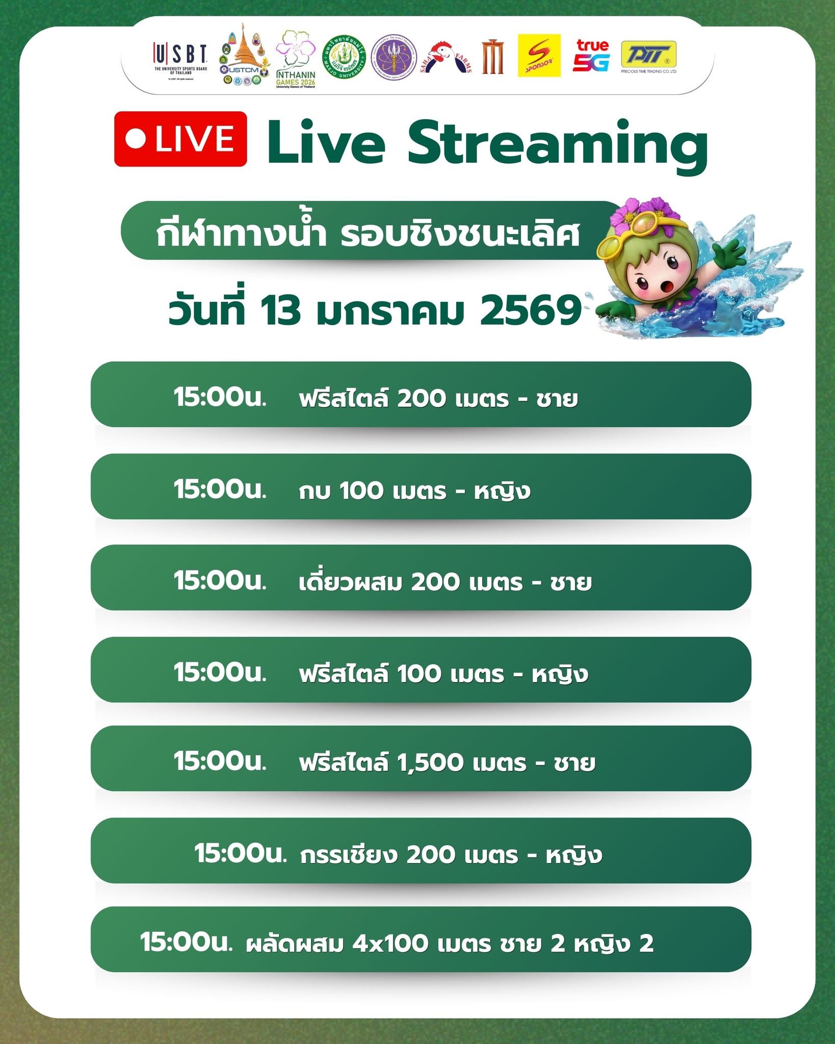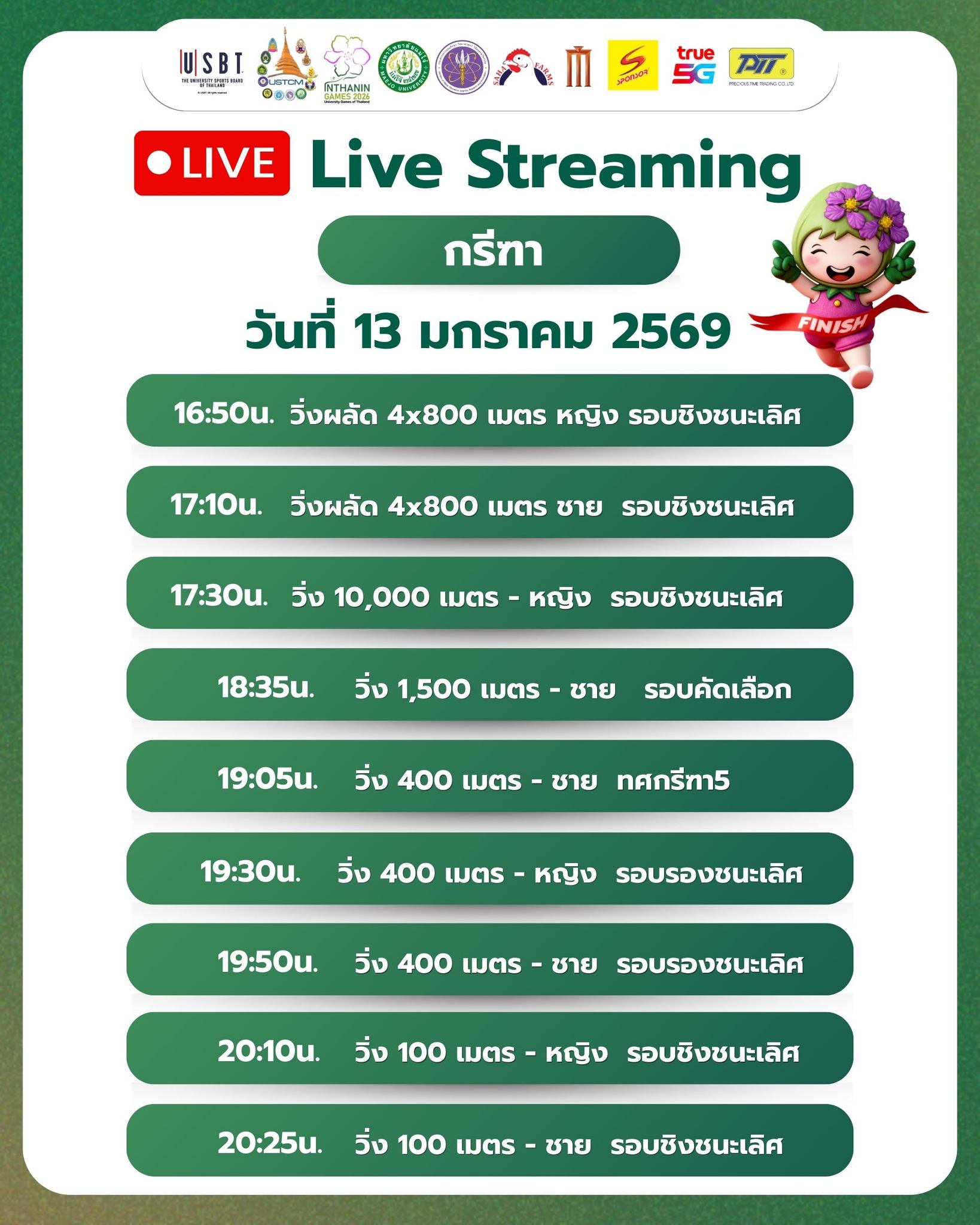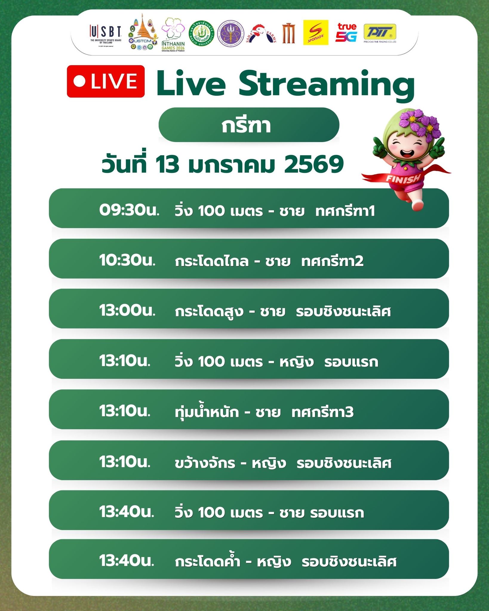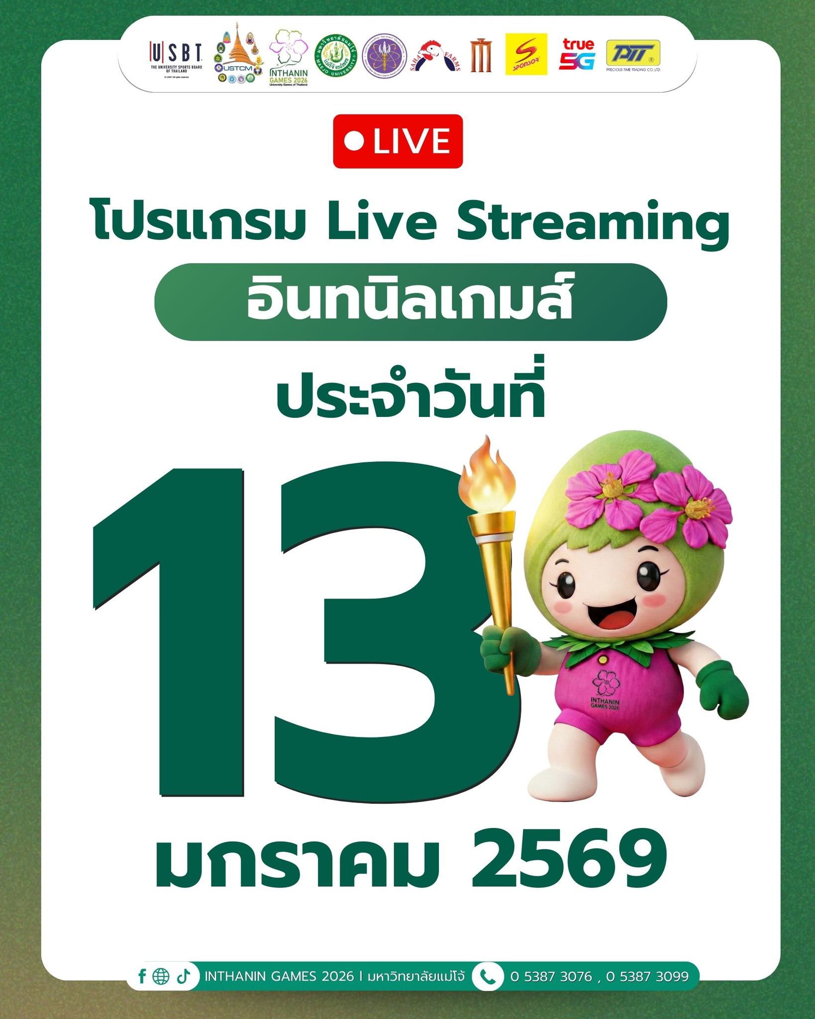 โปรแกรม Live Streaming อินทนิลเกมส์  ประจำวันที่ 13 มกราคม 2569