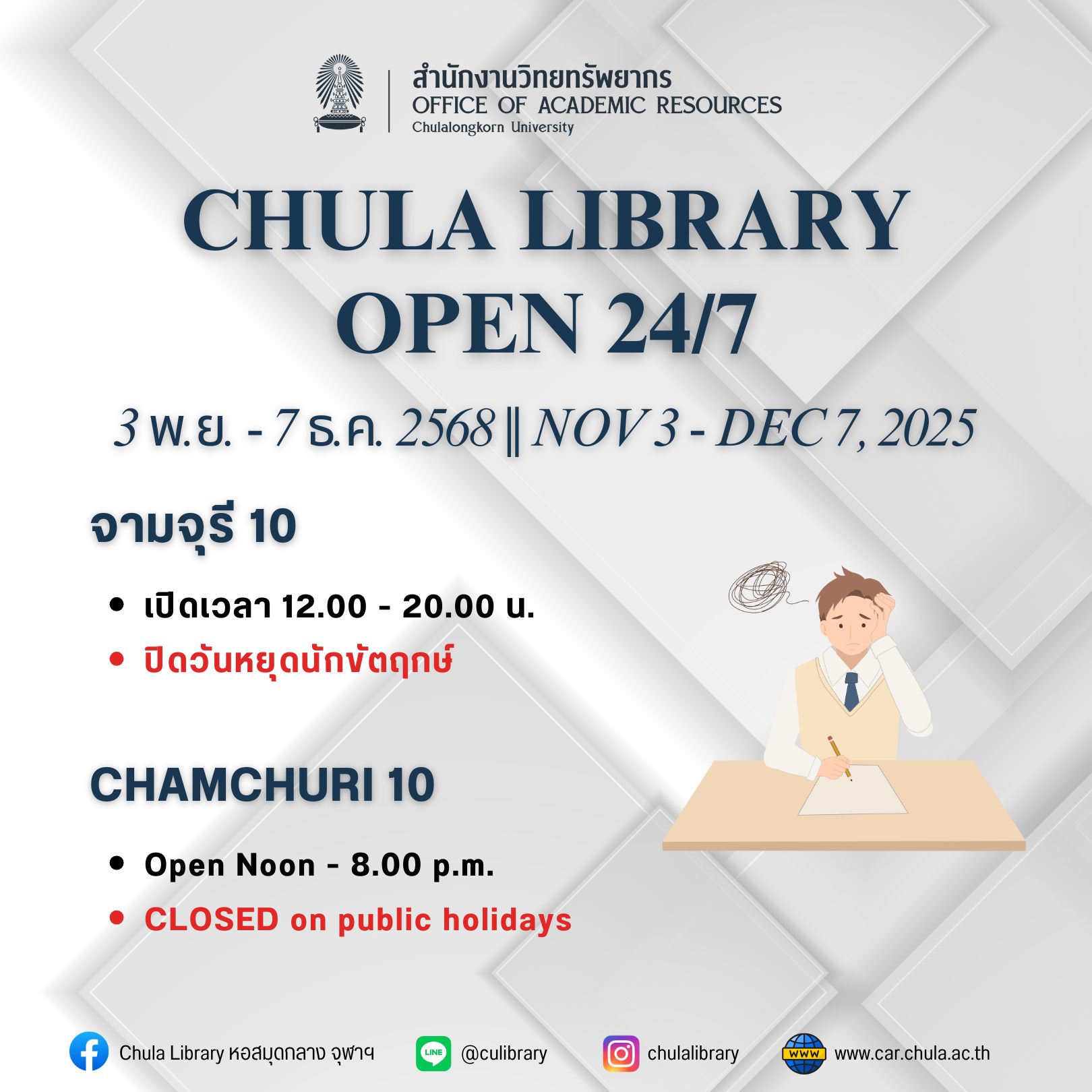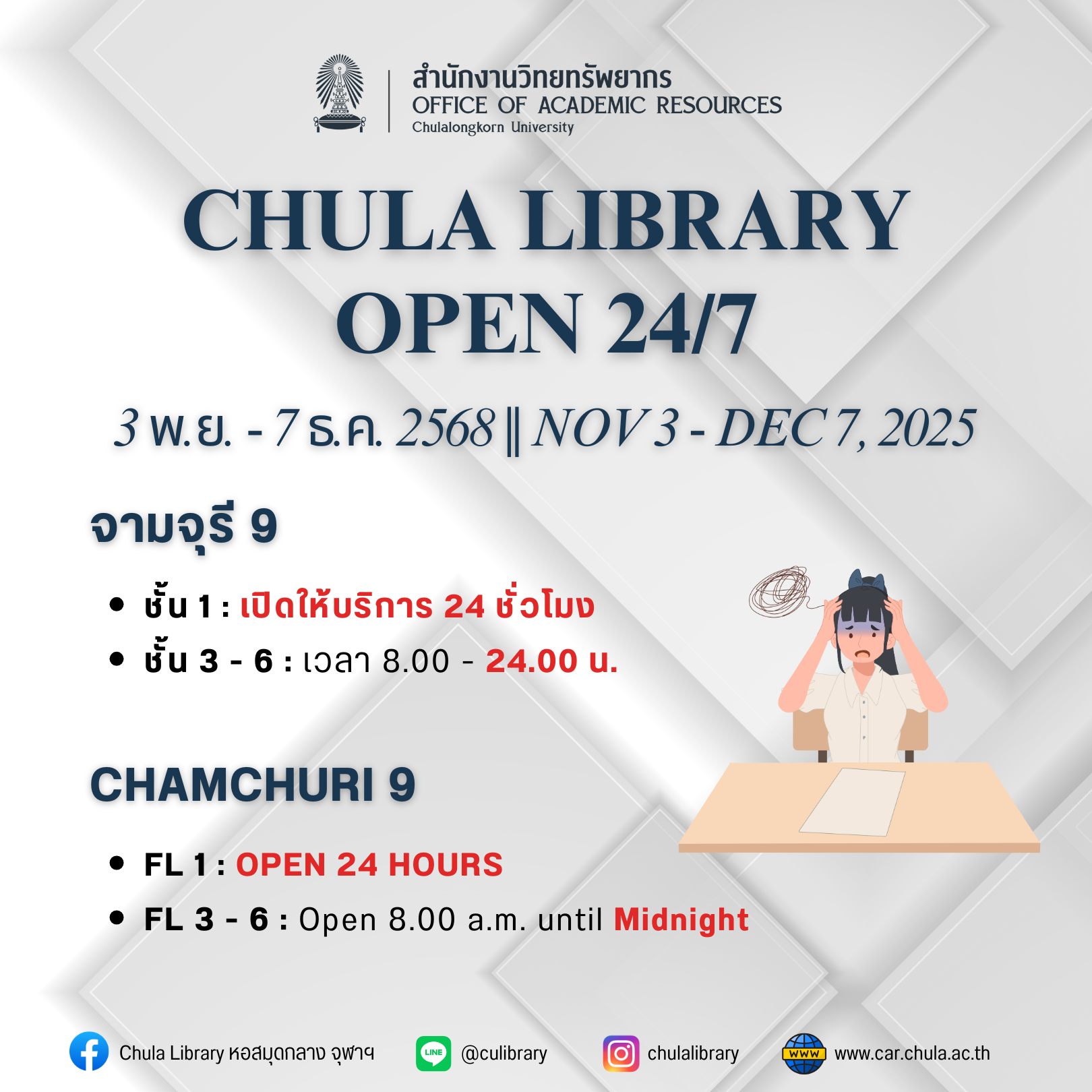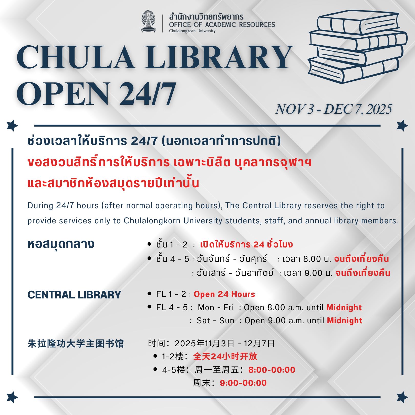 CHULA LIBRARY OPEN 24/7 HOURS NOV 3 – DEC 7, 2025