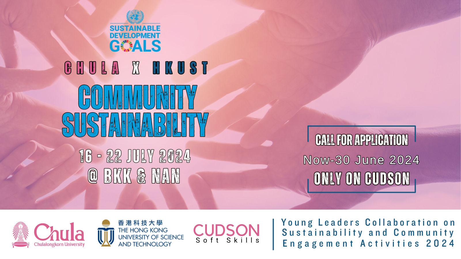 The invitation is to join the “Chula x HKUST Community Sustainability 2024” event, which is free of charge and includes travel abroad opportunities in December.