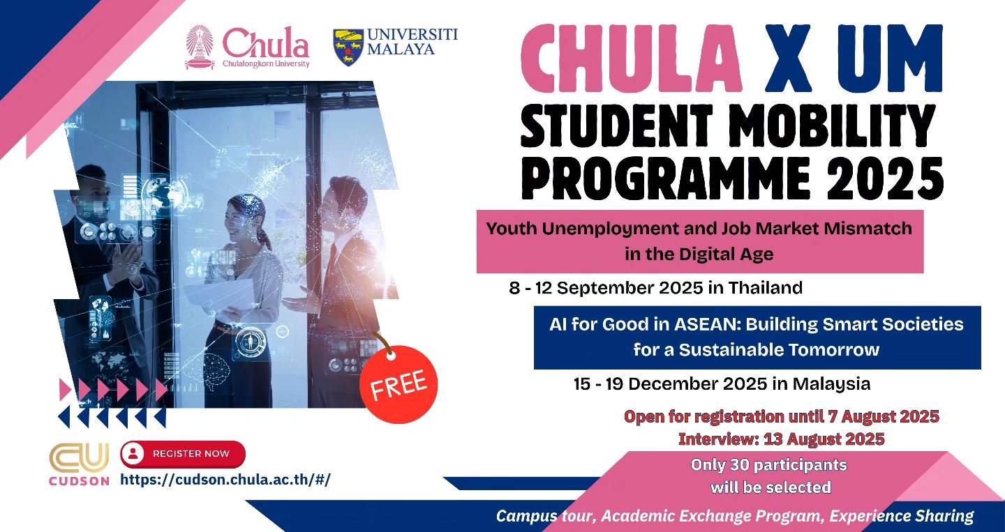 • Collaborate Globally: Join engaging study visits and activities alongside students from both Chulalongkorn University and Universiti Malaya.
