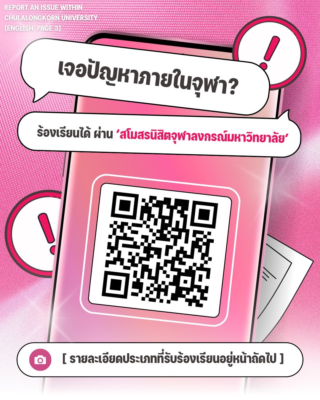 Want to report an issue within Chulalongkorn University simply scan the QR code on the image or click on this link