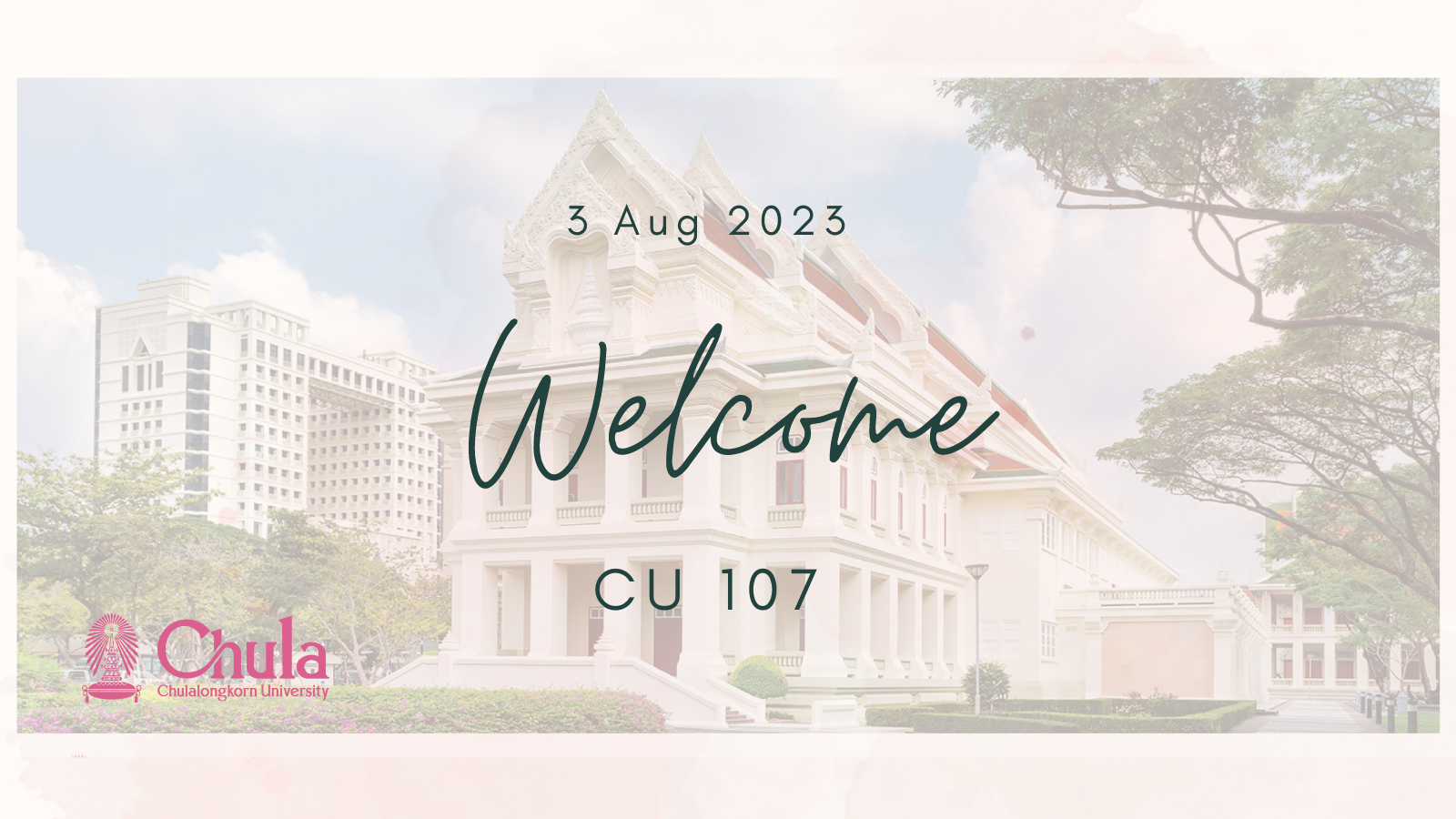 Welcome CU 107 ต้อนรับนิสิตใหม่สู่รั้วจามจุรี กิจกรรมได้จัดไปเมื่อวันที่ 3 สิงหาคม ที่ผ่านมา โดยเป็นการต้อนรับในรูปแบบใหม่ มาพร้อมพิธีกรสุดพิเศษนิสิตเก่าคณะครุศาสตร์ กิตตินันท์ ชินสำราญ หรือที่เรารู้จักกันในนาม ครูกิต The Voice ผู้สร้างปรากฎการด้วยเสียงอันอัดแน่นไปด้วยพลัง และความทุ้มนุ่มลึก นอกจากนี้ ภายในงานมีขบวนการ CU Rangers ที่บุกมาสร้างความสนุกสนานพร้อมทั้งสาระความรู้และการใช้ชีวิตในมหาวิทยาลัย มีการแนะนำบริการต่าง ๆ ผ่านละครเวที สุดพิเศษนิสิตที่เข้าร่วมงานนี้จะได้รับของที่ระลึก กระบอกน้ำรักษ์โลกและบัตรสมนาคุณจาก Santa Fe’ Steak มอบให้ทุก ๆ คนที่เข้าร่วมงานเลย ถ้าพร้อมแล้วไปชมภาพบรรยาการไปด้วยกันเลยยย….
